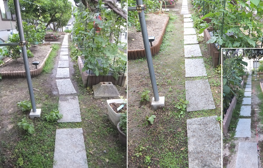 裏庭の敷石の敷設が終了したが、どうしても気になるところが。