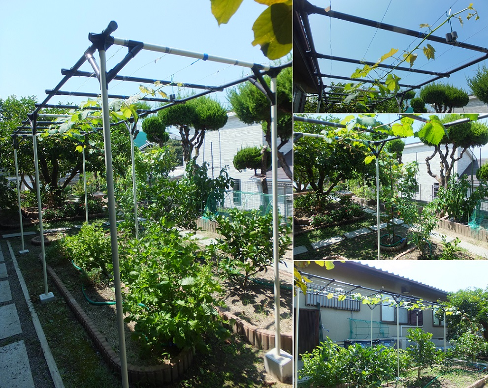 一日30cmほど伸びていく。4mほどのぶどう棚。