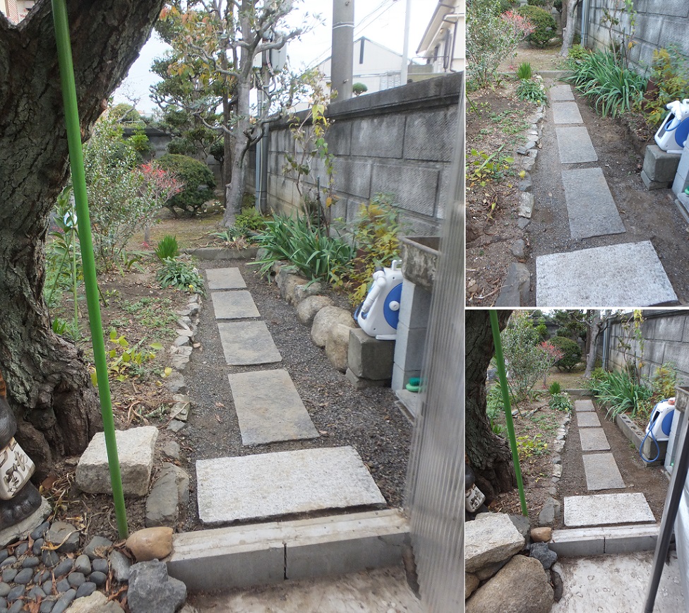 ブロックから石組で幅が広くなるので、まず敷石の位置を変更する。