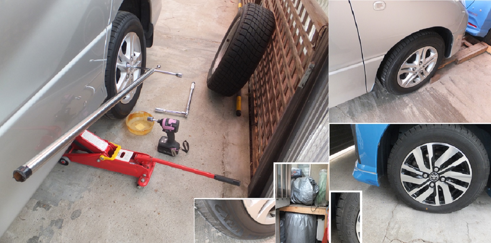 タイヤの保管場所が、ガレージから一番遠い場所にあり、タイヤ交換よりタイヤの運搬の方が大変。