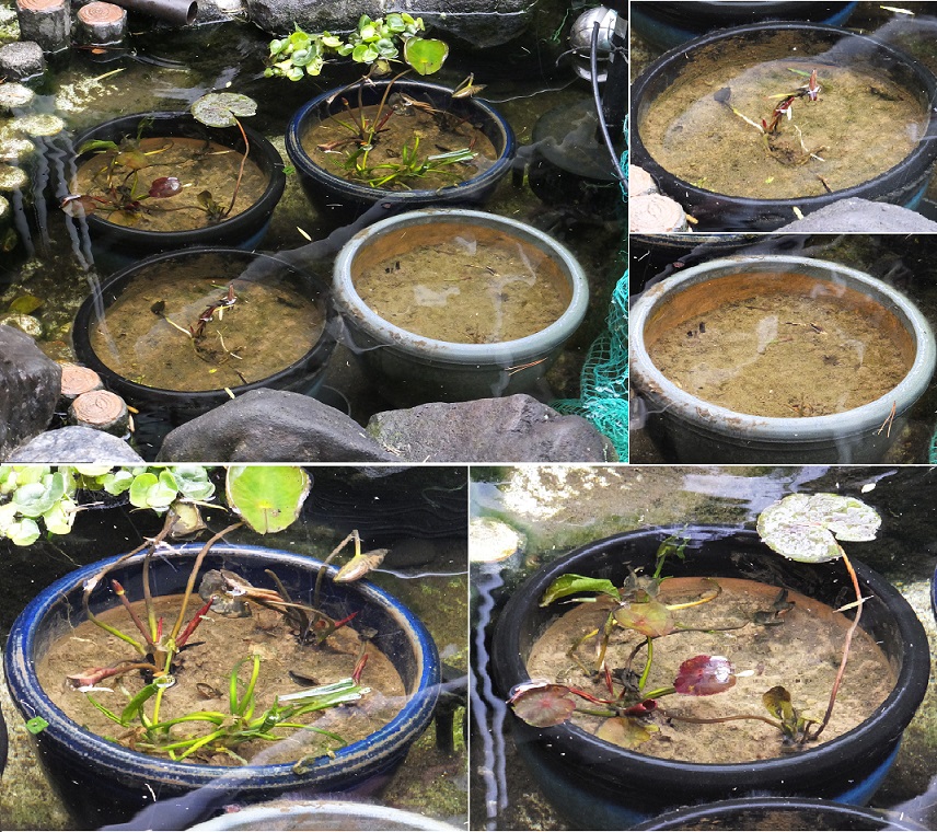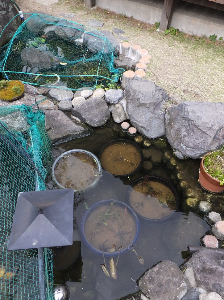 昨年設置した蓮と睡蓮。昨年度は今一の状態だったので、今年は手を入れて・・・