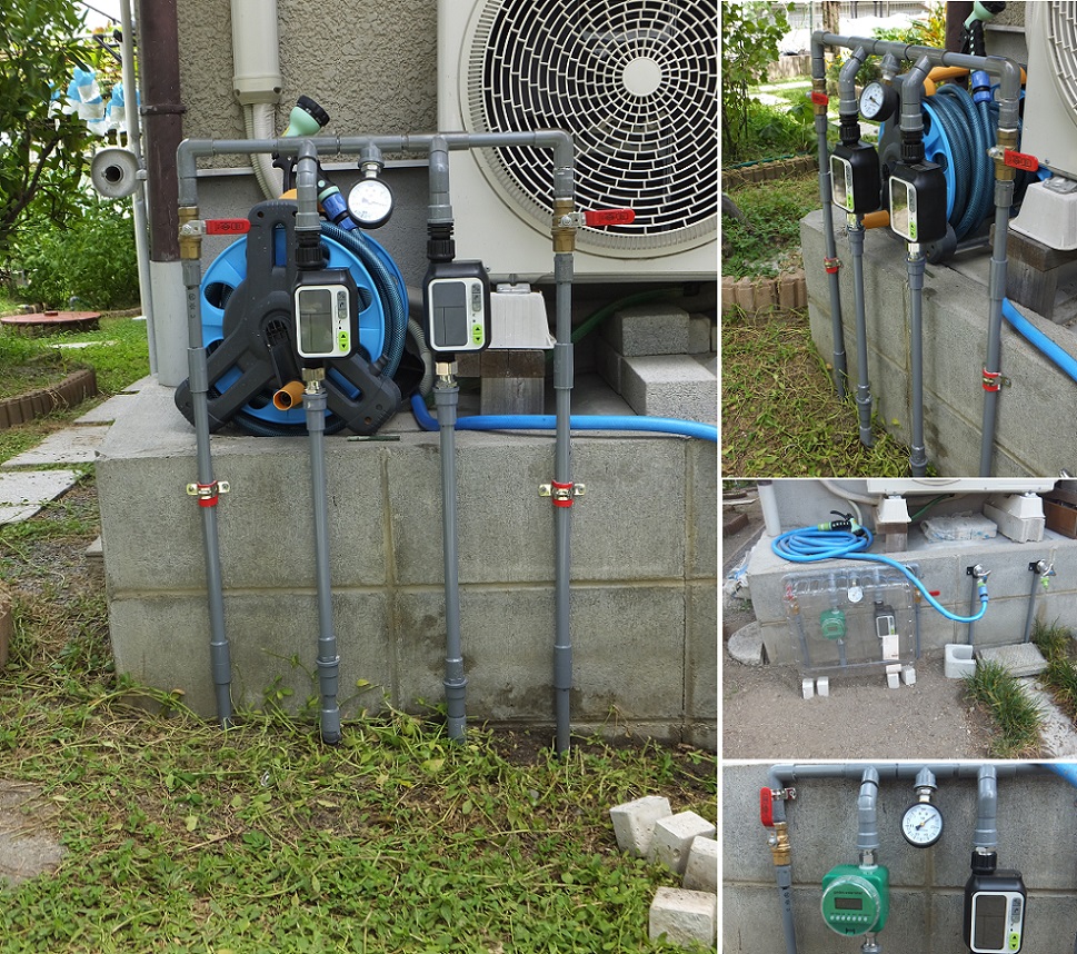 散水時間をタイマーで設定しているが、設置したタイマーの位置が低くて、いつもかがんで操作をしていた。だんだんつらくなってきたので、思い切って位置を高くすることにした。