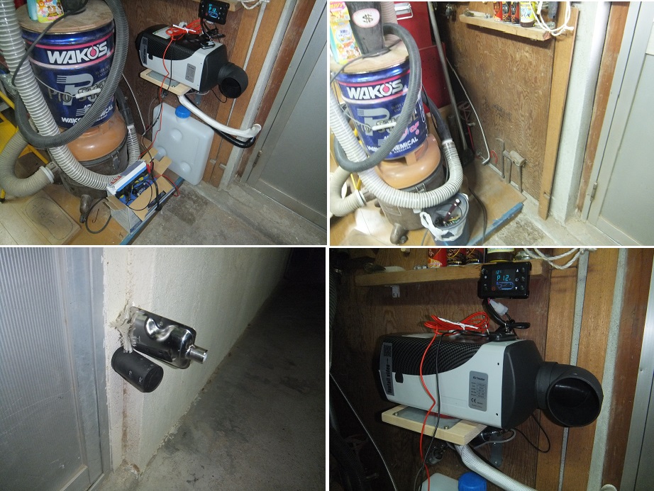 車用に購入したFFHeater。計画変更で、余剰となったが、車庫に設置することにした。