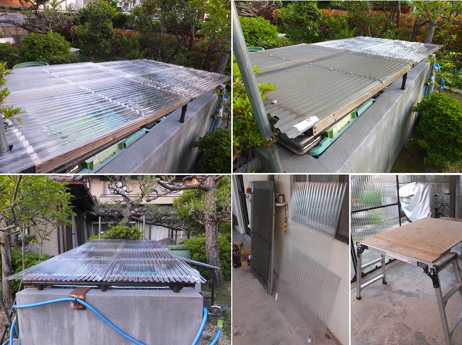 波板がボロボロになってきたので、今回は透明の波板に変えました。 陽がさんさんと注いで、分解菌の繁殖が進めばいいな