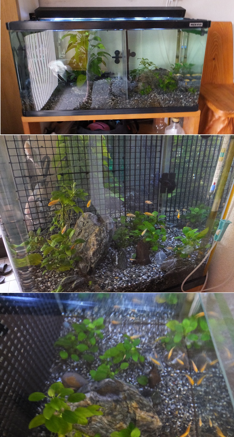 外の水槽から、エンジェルがはいいている水槽に移す。