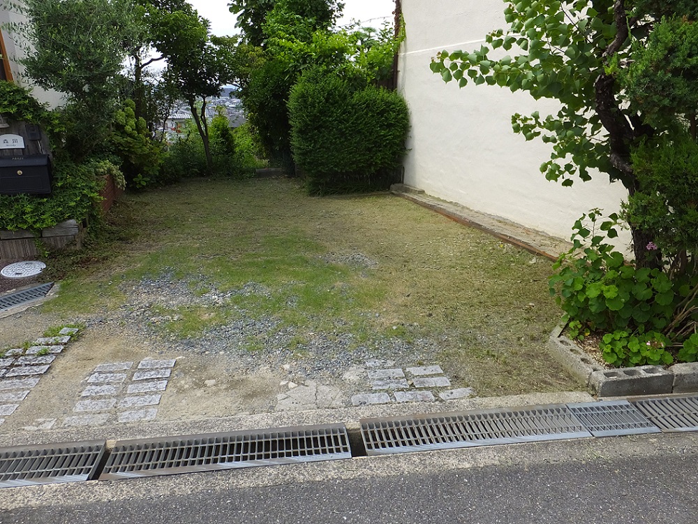 道路の駐車場の下草刈り