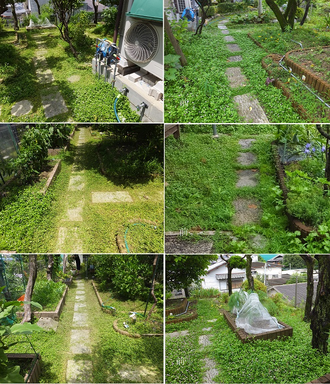 菜園の通路が大変かことになっている。