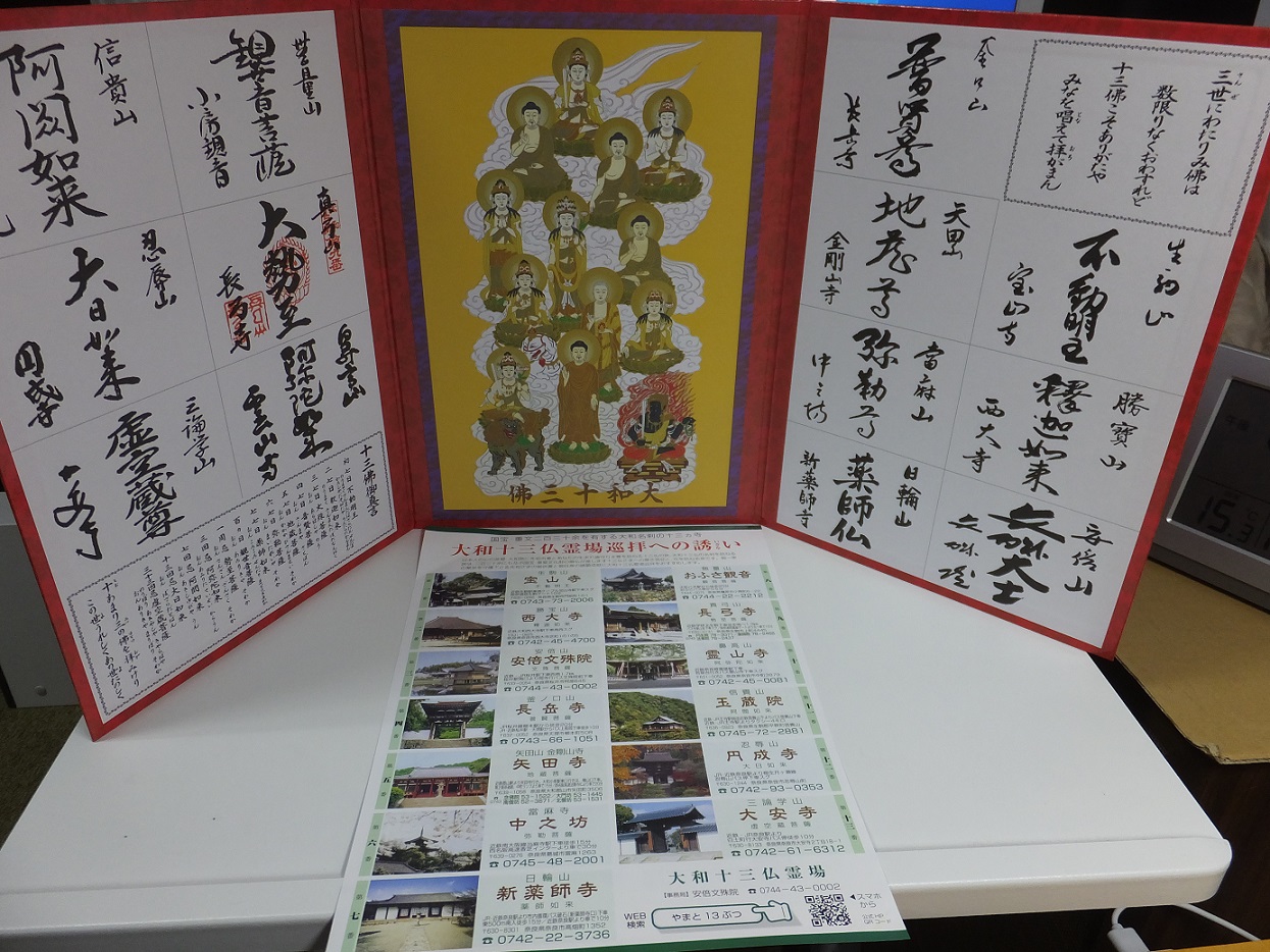 案内の窓口へ、屏風の形の朱印帖?が無料で・・・・