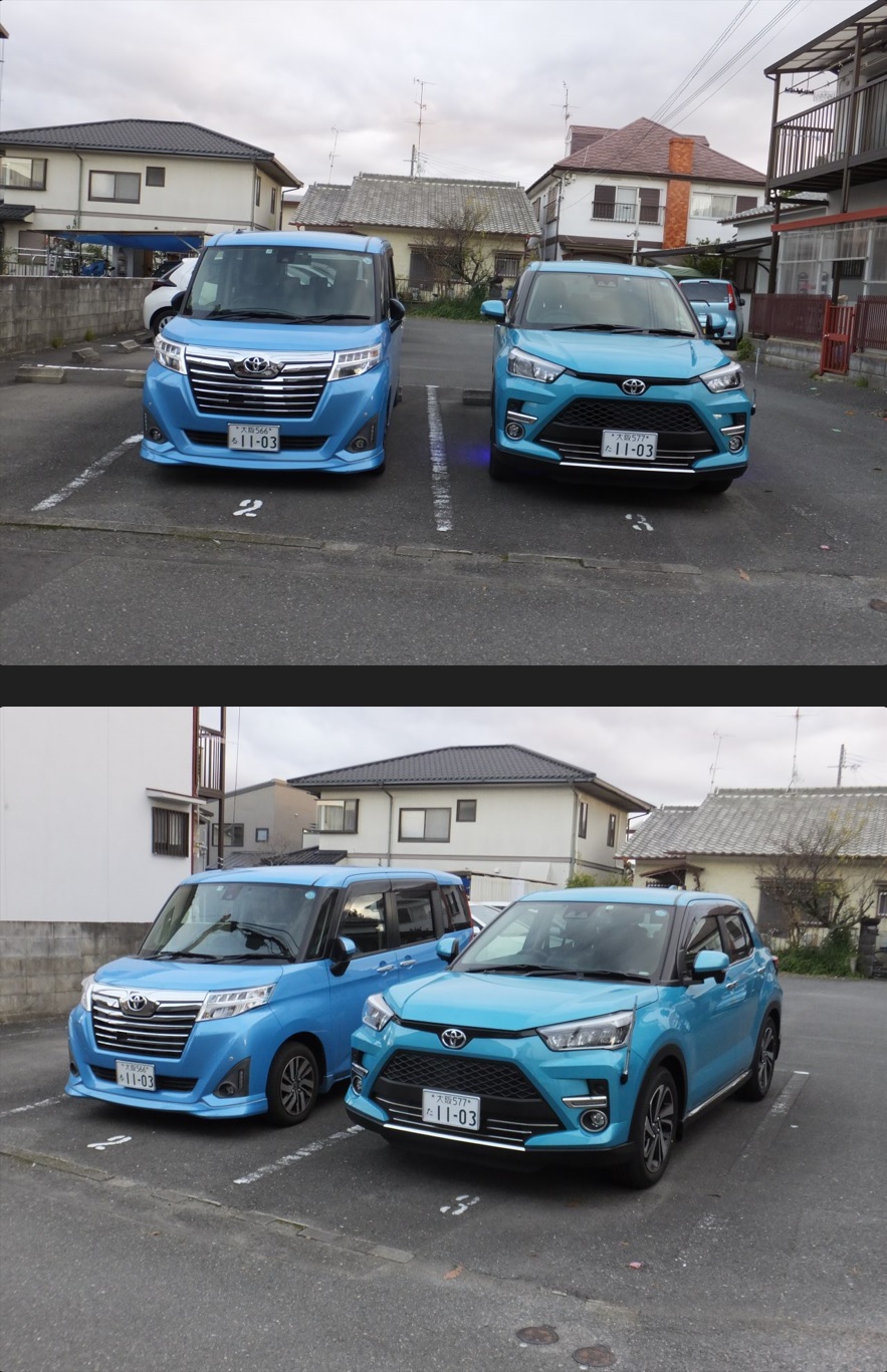 近隣の友人に譲ったRoomy.駐車中のRoomyの隣において、ぱちりと。