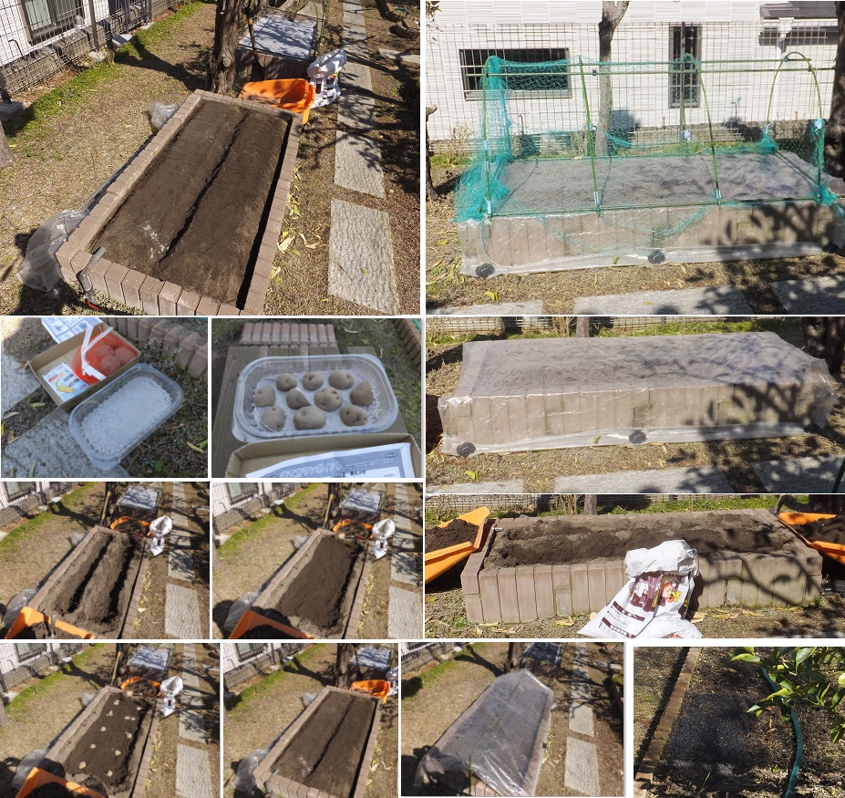 種植え・種蒔 / 場所:ジャガイモ・モロヘイヤ
