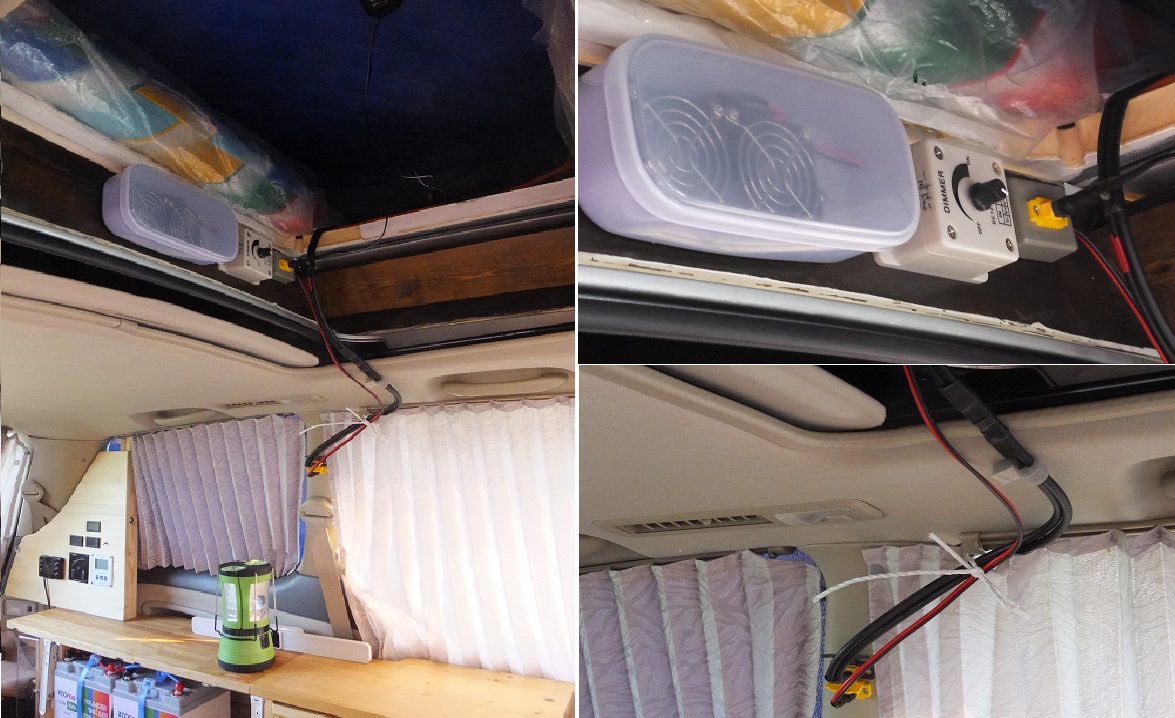 屋根の上の太陽光パネルの配線を社内に取り込むための配線を行った。併せて、外向けのファンの配線も行った。
