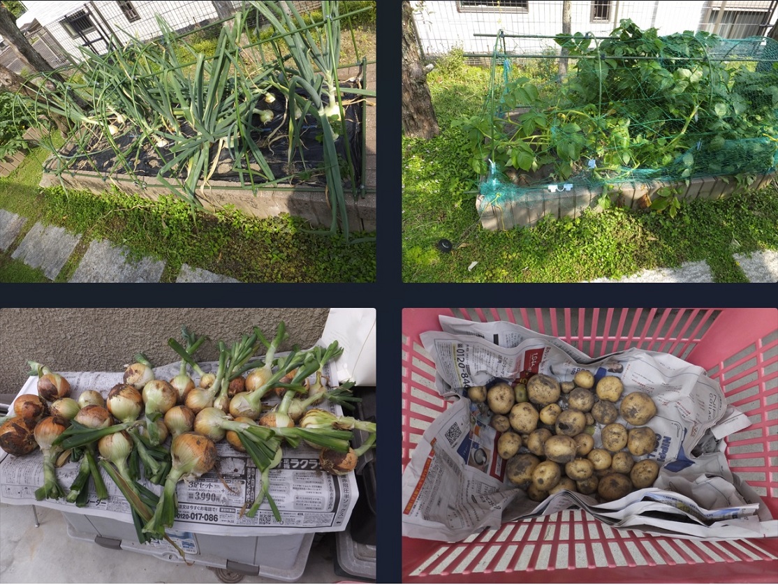 玉ねぎとじゃがいもの収穫。