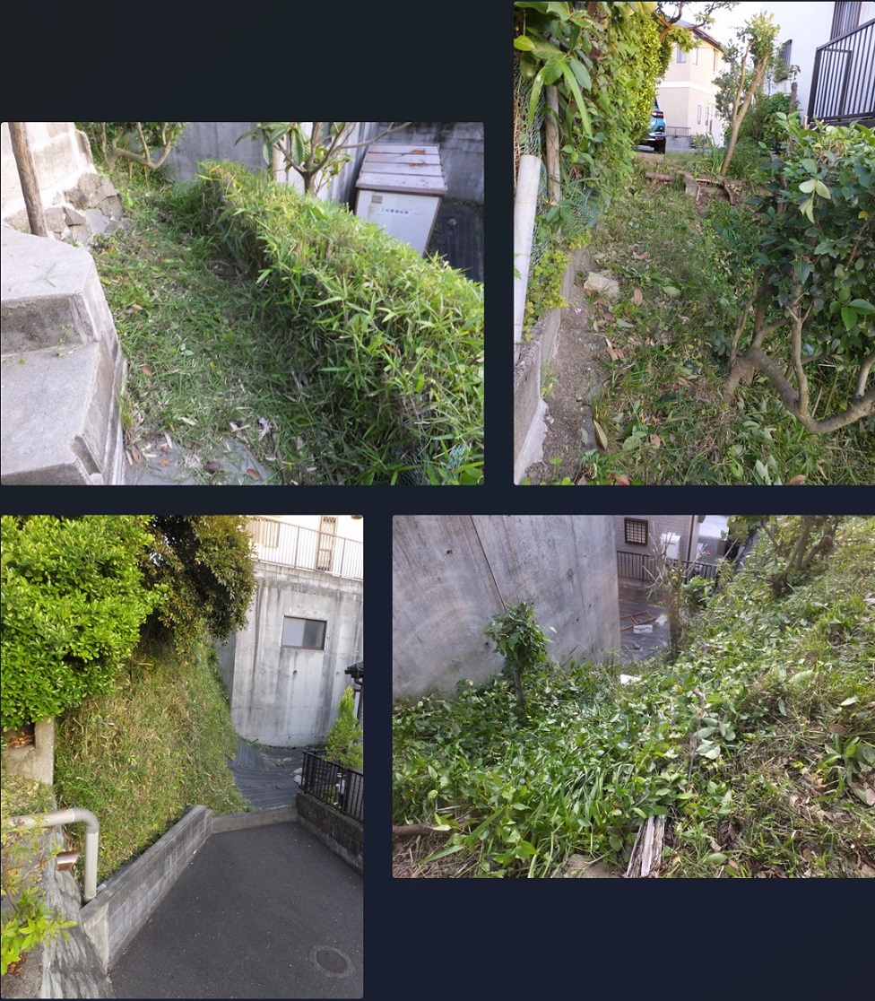 裏の崖の笹を