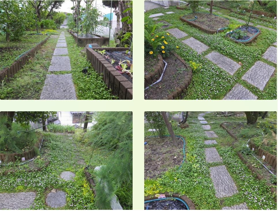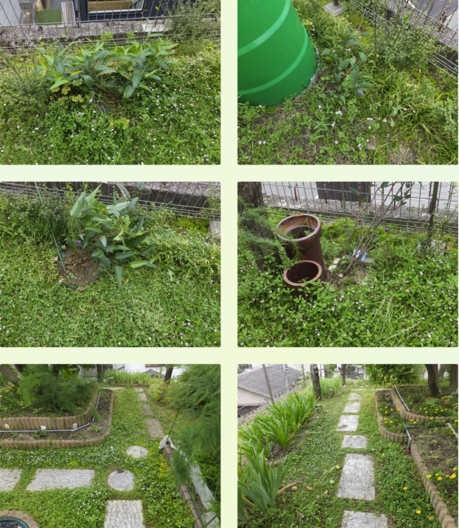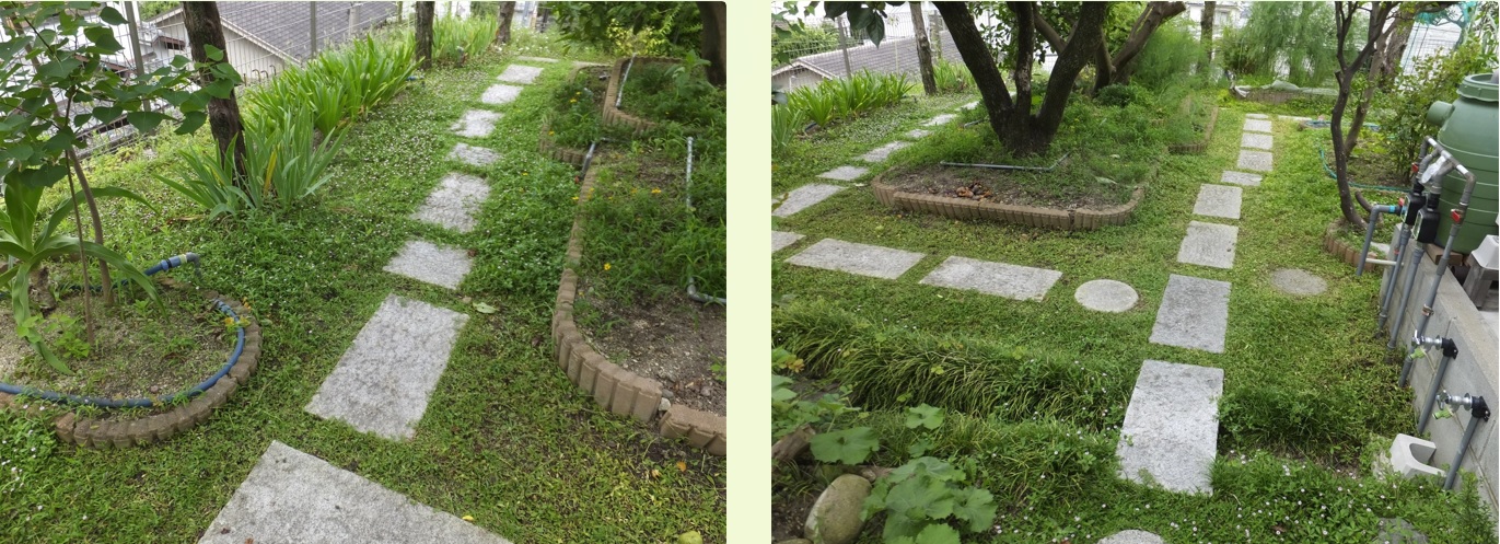 雑草刈り:ガレージ横 トリミング:イワダレソウ:菜園西側
