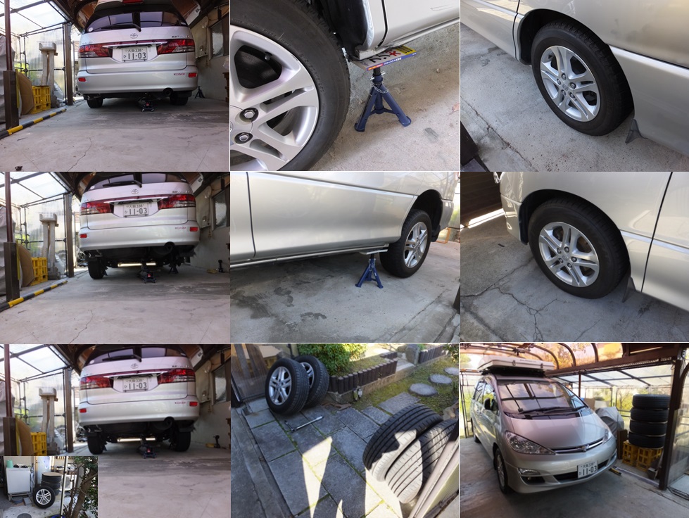23日スタッドレスタイヤ蔵出・・敷地の対角線の一番遠いところに保管場所があり、車庫まで搬出。 26日スダッドレスタイヤ装着・格納 ・・タイヤの交換と、保管場所に運び格納する。